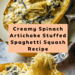This creamy spinach and artichoke stuffed spaghetti squash is a comforting and healthy twist on a classic dip. Roasted spaghetti squash halves are filled with a rich mixture of cheeses, spinach, and artichokes, then baked until bubbly and golden. It’s a delicious, low-carb meal perfect for any night of the week.