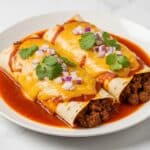 Tender, slow-cooked birria meat wrapped in warm corn tortillas, smothered in rich enchilada sauce, and topped with melty cheese and fresh garnishes. These Birria Enchiladas are comforting, flavorful, and perfect for a special dinner or an easy meal prep option.