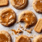 7. Bake Cookies: Bake in the preheated oven for 10 to 12 minutes or until the edges turn golden and the cookie butter topping has melted and crackled.