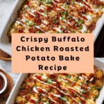 This Buffalo Chicken Roasted Potato Bake is a hearty and flavorful dish that combines crispy potatoes, spicy buffalo chicken, melted cheeses, and savory bacon. It’s perfect for a cozy dinner or a game day feast. The layers of flavor come together in a simple bake that’s sure to please everyone at the table.