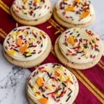 Store the cookies in an airtight container at room temperature for up to 3 days. If frosted, keep them refrigerated to maintain the buttercream’s freshness, and allow cookies to come to room temperature before serving. For longer storage, freeze unfrosted cookies and thaw before frosting.