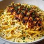 Cajun Chicken & Creamy Parmesan Linguine is a flavorful pasta dish that combines spicy seared chicken with a rich, cheesy cream sauce tossed with tender linguine. A comforting meal with a kick, perfect for those who love a blend of Southern spices and Italian creaminess.