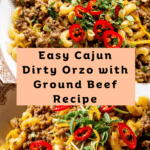 Keywords: Cajun orzo, dirty rice style, one-pan meal, ground beef recipe, Cajun seasoning dinner, easy weeknight dinner, comforting pasta dish