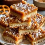 These Cake Mix Bars are a decadent and easy-to-make dessert featuring a buttery yellow cake base topped with a rich homemade toffee glaze, sprinkled with nuts and flaky sea salt for added texture and flavor. Perfectly balanced with a tender crumb and a luscious, sticky topping, these bars combine simplicity and indulgence for any occasion.