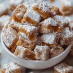 Caramel Apple Puppy Chow is a delightful treat that combines the classic fall flavors of crisp apples and gooey caramel with the crunchy texture of Chex cereal. This sweet, crunchy snack is easy to make, perfect for gatherings, gifting, or cozy nights. The recipe features a luscious caramel apple white chocolate coating dusted with powdered sugar, creating a signature puppy chow snack with a multi-layered blend of textures and flavors.
