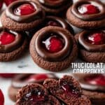 Delight in these rich Chocolate Cherry Thumbprint Cookies featuring a soft cocoa-infused dough, a luscious cherry filling, and a smooth chocolate coating. Perfectly bite-sized, these cookies combine the deep flavor of cocoa with sweet cherry centers and a glossy chocolate finish, making them an irresistible treat for any occasion.
