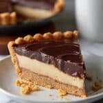 This Chocolate Peanut Butter pie combines a crisp graham cracker crust with a creamy peanut butter filling and a rich chocolate ganache topping. It’s a luscious dessert that’s perfect for peanut butter and chocolate lovers looking for an impressive yet easy treat.