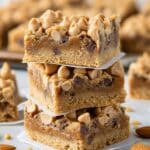 Keywords: peanut butter bars, cookie bars, oatmeal cookie bars, chocolate chip bars, easy dessert, baked snack