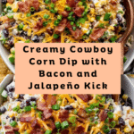 Cowboy Corn Dip is a creamy, flavorful appetizer that’s perfect for any gathering. With a blend of cheeses, corn, black beans, and a little kick from jalapeños, it’s sure to be a crowd-pleaser. Serve it with tortilla chips for an irresistible snack.