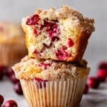 Keywords: cranberry muffins, cream cheese muffins, streusel topping, breakfast muffins, holiday muffins