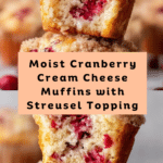 Deliciously moist Cranberry Cream Cheese Muffins featuring a creamy cheesecake filling and a crunchy streusel topping, perfect for breakfast or a sweet snack.