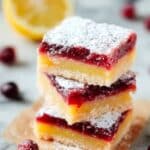 Keywords: cranberry lemon bars, lemon bars, cranberry dessert, shortbread crust, lemon dessert, holiday dessert, fruit bars