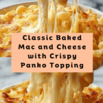 Classic creamy baked Mac and Cheese featuring al dente elbow macaroni enveloped in a rich, sharp cheddar cheese sauce, topped with crispy panko breadcrumbs for a delightful golden crust.