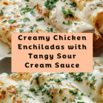 Chicken Enchiladas with Sour Cream White Sauce offer a creamy, comforting twist on a Mexican classic. Tender shredded chicken is wrapped in soft flour tortillas, smothered in a rich, tangy white sauce, and baked until bubbly and golden. This versatile dish is perfect for weeknight dinners or festive gatherings.