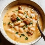 Keywords: creamy bean soup, white bean soup, turkey sausage soup, easy soup recipe, hearty soup, comforting winter soup