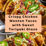 Keywords: crispy wonton tacos, chicken tacos, teriyaki glaze, Asian fusion, appetizer recipe