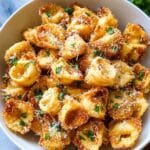 Keywords: Parmesan crusted tortellini, fried tortellini bites, crispy tortellini appetizer, Italian snack, tortellini recipe, cheese tortellini bites