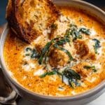 This Crock Pot Creamy Chicken Parmesan Soup is a comforting and flavorful one-pot meal featuring tender chicken breasts slow-cooked in a savory tomato broth with Italian seasonings, creamy Parmesan cheese, and fresh spinach. Finished with tortellini for a hearty touch, this soup is perfect for cozy dinners and requires minimal prep.