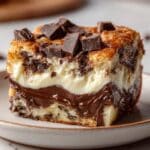Indulge in this Decadent Chocolate & Cream Cheese Bread Pudding that boasts a wonderfully gooey center and a perfectly golden crust. Made with sweet brioche or challah bread soaked in a rich custard of eggs, whole milk, and heavy cream, it’s studded generously with cream cheese cubes and dark chocolate chunks. The slow soak ensures a moist, luscious texture, making it an irresistible dessert perfect for any occasion.