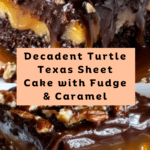 Indulge in this decadent Turtle Texas Sheet Cake, featuring a moist chocolate cake base layered with rich fudge frosting, gooey caramel drizzle, and crunchy pecans. This irresistible dessert combines classic flavors for a deliciously satisfying treat perfect for any occasion.