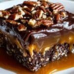Indulge in this decadent Turtle Texas Sheet Cake, featuring a moist chocolate cake base layered with rich fudge frosting, gooey caramel drizzle, and crunchy pecans. This irresistible dessert combines classic flavors for a deliciously satisfying treat perfect for any occasion.