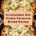 Dill Pickle Focaccia Bread is a flavorful twist on traditional focaccia, combining a soft, airy crust with a creamy garlic dill sauce, tangy dill pickles, and melted mozzarella cheese. This savory bread is perfect as an appetizer, dinner, or main course for pickle lovers seeking a unique and delicious meal.