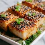 This Easy Ginger Soy Cod recipe features tender cod fillets marinated in a flavorful mixture of low-sodium soy sauce, sesame oil, honey, rice vinegar, fresh ginger, and garlic. The cod can be cooked either by baking or pan-searing, then optionally topped with a glossy cornstarch glaze. Garnished with green onions and sesame seeds, this dish is a delightful, quick, and healthy meal perfect served alongside rice or steamed vegetables.