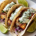 These Fish Tacos with Lime Crema combine tender, spiced white fish fillets pan-cooked to perfection with a refreshing cabbage slaw and a zesty lime crema. Perfectly balanced flavors and vibrant textures make this recipe a delicious and easy meal for any occasion.