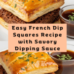 French Dip Squares are a delicious twist on the classic French dip sandwich, perfect as an appetizer or casual meal. Layers of roast beef and Swiss cheese are baked between crescent roll dough and served with warm beef broth for dipping. They’re quick to prepare and wonderfully comforting.