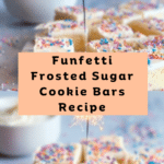 Keywords: Funfetti sugar cookie bars, frosted sugar cookie bars, buttercream frosting, rainbow sprinkles, easy dessert, party dessert, sugar cookie recipe