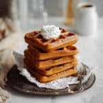 Keywords: gingerbread waffles, holiday waffles, spiced waffles, breakfast recipe, brunch recipe, molasses waffles
