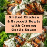 Enjoy a wholesome and flavorful meal with these Grilled Chicken & Broccoli Bowls, topped with a rich and creamy garlic sauce. This dish combines tender, smoky chicken with crisp roasted broccoli over your choice of grains for a filling, balanced dinner.