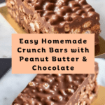 Keywords: homemade crunch bars, no bake dessert, crispy rice cereal bars, peanut butter bars, chocolate bars, easy snack, sweet treat