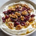 This cranberry goat cheese dip is an effortless crowd-pleaser with a perfect balance of creamy, sweet, and tangy flavors. Ready in just a few minutes, it’s an ideal appetizer for parties or snacking anytime. Enjoy the delightful crunch of walnuts paired with fresh thyme and a hint of black pepper.