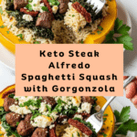 PrintKeto Low Carb Steak Gorgonzola Alfredo Spaghetti Squash Recipe
