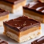 Millionaire’s Shortbread is a decadent dessert featuring a buttery shortbread base topped with a rich caramel layer and finished with a smooth milk chocolate topping. This classic treat combines a crisp, tender crust with sweet, creamy caramel and silky chocolate, making it an indulgent bar perfect for any occasion.