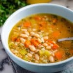 Keywords: navy beans, white bean soup, hearty soup, slow simmered beans, homestyle soup, vegetable soup, healthy soup, easy soup recipe