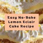This no-bake lemon eclair cake is a refreshing and easy dessert perfect for warm days or last-minute gatherings. Layers of graham crackers are combined with a creamy lemon pudding and whipped topping mixture for a light, tangy treat that requires no oven time.