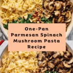 Keywords: parmesan spinach mushroom pasta, one-pan pasta skillet, vegetarian pasta, farfalle pasta recipe, quick pasta dinner, easy mushroom pasta, spinach pasta skillet
