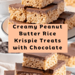 These Peanut Butter Rice Krispie Treats combine the classic chewy texture of Rice Krispies with the rich flavors of creamy peanut butter and a smooth chocolate topping. Perfect for a quick, no-bake dessert that’s both nostalgic and indulgent.