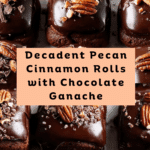 Keywords: pecan cinnamon rolls, cinnamon rolls, chocolate cinnamon rolls, homemade cinnamon rolls, cinnamon rolls recipe, chocolate ganache, baked pastries, breakfast rolls