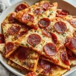 Delicious and crispy pizza chips made from melted mozzarella cheese topped with pepperoni slices, perfect as a quick snack or appetizer. These low-carb, keto-friendly chips are easy to make, baked until golden and bubbly for a cheesy, savory treat.
