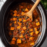 Keywords: potato black bean stew, slow cooker recipe, healthy stew, sweet potato stew, black bean chili, easy crock pot meals