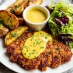 Keywords: pretzel crusted chicken, honey mustard sauce, fried chicken cutlets, crunchy chicken, easy dinner recipe, crispy chicken