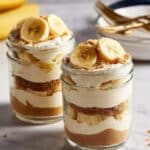 - Assemble the pudding layers: Using jars or serving cups, layer the pudding mixture on the bottom, followed by a layer of crushed vanilla wafers, then banana slices. Repeat to build two layers of each ingredient, ending with banana slices on top.