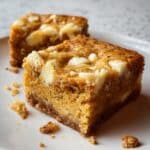 Keywords: pumpkin blondies, pumpkin dessert, white chocolate blondies, fall baking, autumn treats
