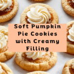 These Pumpkin Pie Cookies capture all the cozy flavors of pumpkin pie in a soft, buttery cookie form. Topped with a spiced pumpkin cream cheese filling and a dollop of whipped cream, they’re perfect for autumn gatherings or a sweet seasonal treat.