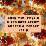 Quick pepper jelly bites are a perfect appetizer for any gathering. Combining creamy cheese with sweet and spicy jelly in crisp phyllo shells, they offer a delightful bite-sized treat that’s easy to prepare and sure to please.