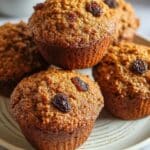 Store muffins in an airtight container at room temperature for up to 3 days; place a paper towel in the container to absorb moisture. They keep well in the refrigerator for up to 5 days thanks to the cereal soaking. For longer storage, freeze muffins individually wrapped in plastic wrap inside a freezer bag for up to 3 months. Reheat from frozen in the microwave for 30 seconds or thaw overnight in the fridge.