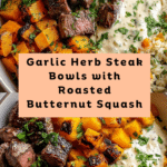 Butternut Squash Garlic Herb Steak Bowls combine tender, seared steak with sweet, roasted butternut squash in a flavorful garlic herb butter. This cozy and elegant dish is perfect for a satisfying weeknight dinner that feels both gourmet and comforting.